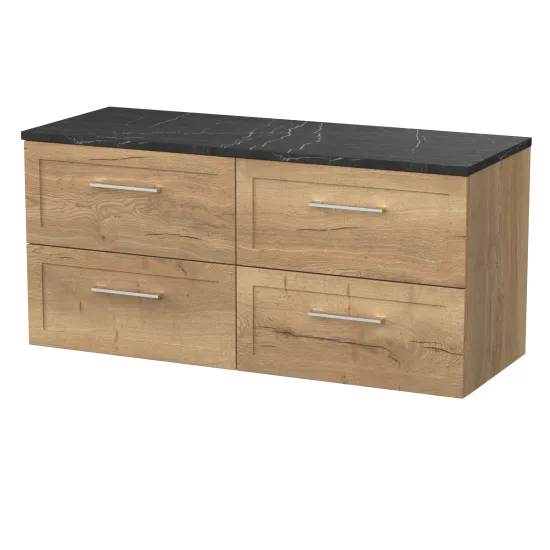 nuie Lux Larck 600mm 2- Drawer Wall Hung Unit with Laminate Worktop - Autumn Oak