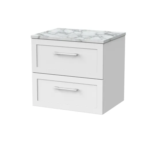 nuie Lux Larck 600mm 2- Drawer Wall Hung Unit with Laminate Worktop - Matt White