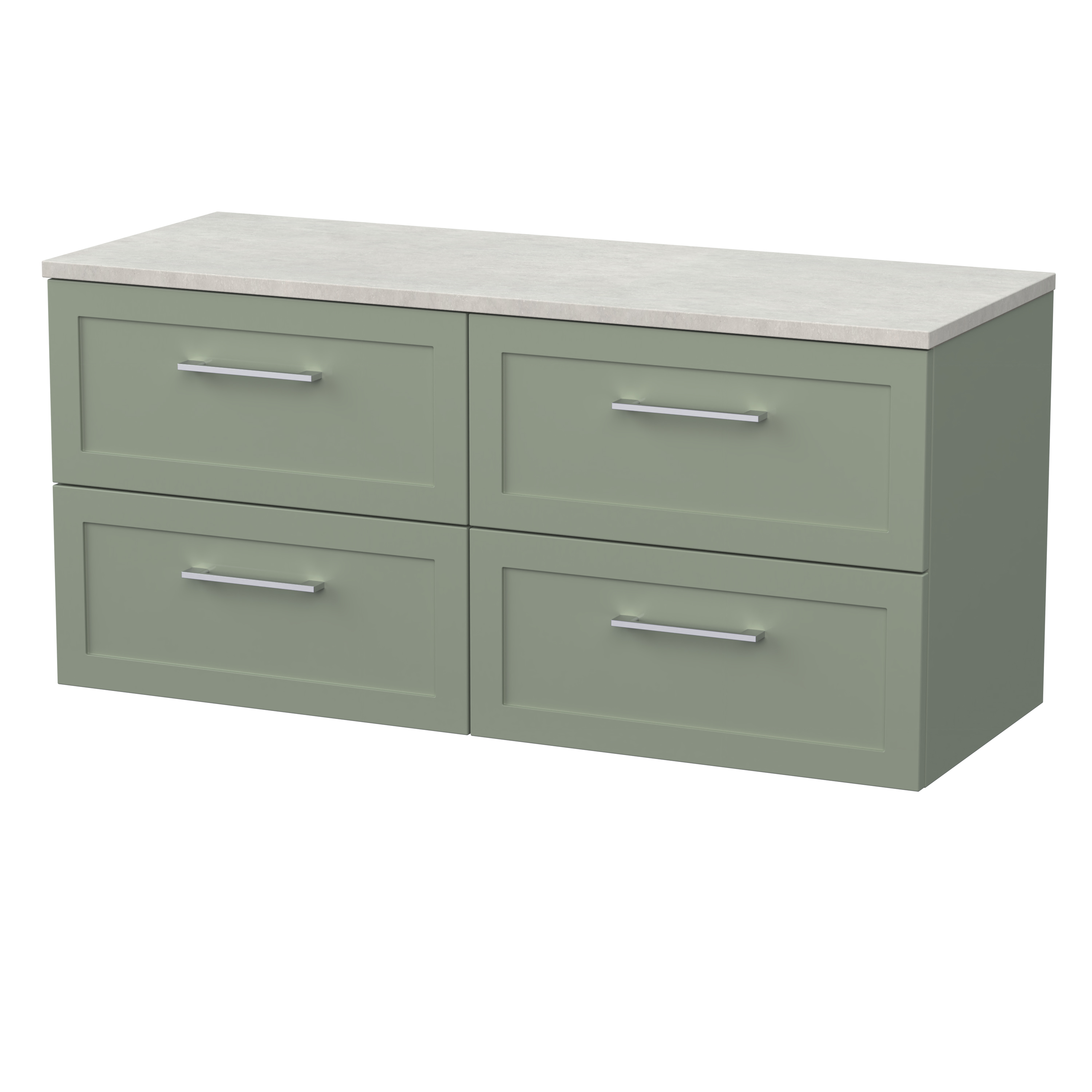 nuie Lux Larck 600mm 2- Drawer Wall Hung Unit with Laminate Worktop - Fern Green
