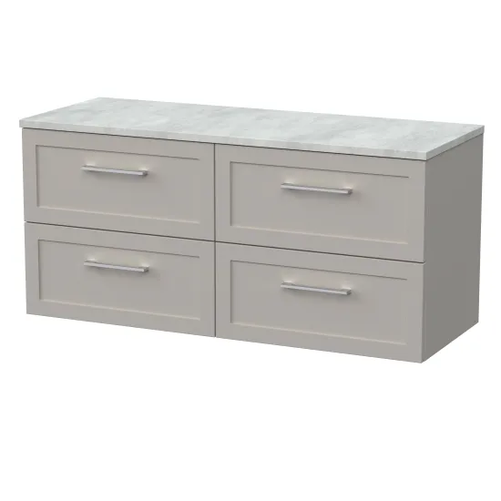 nuie Lux Larck 600mm 2- Drawer Wall Hung Unit with Laminate Worktop - Pebble Grey