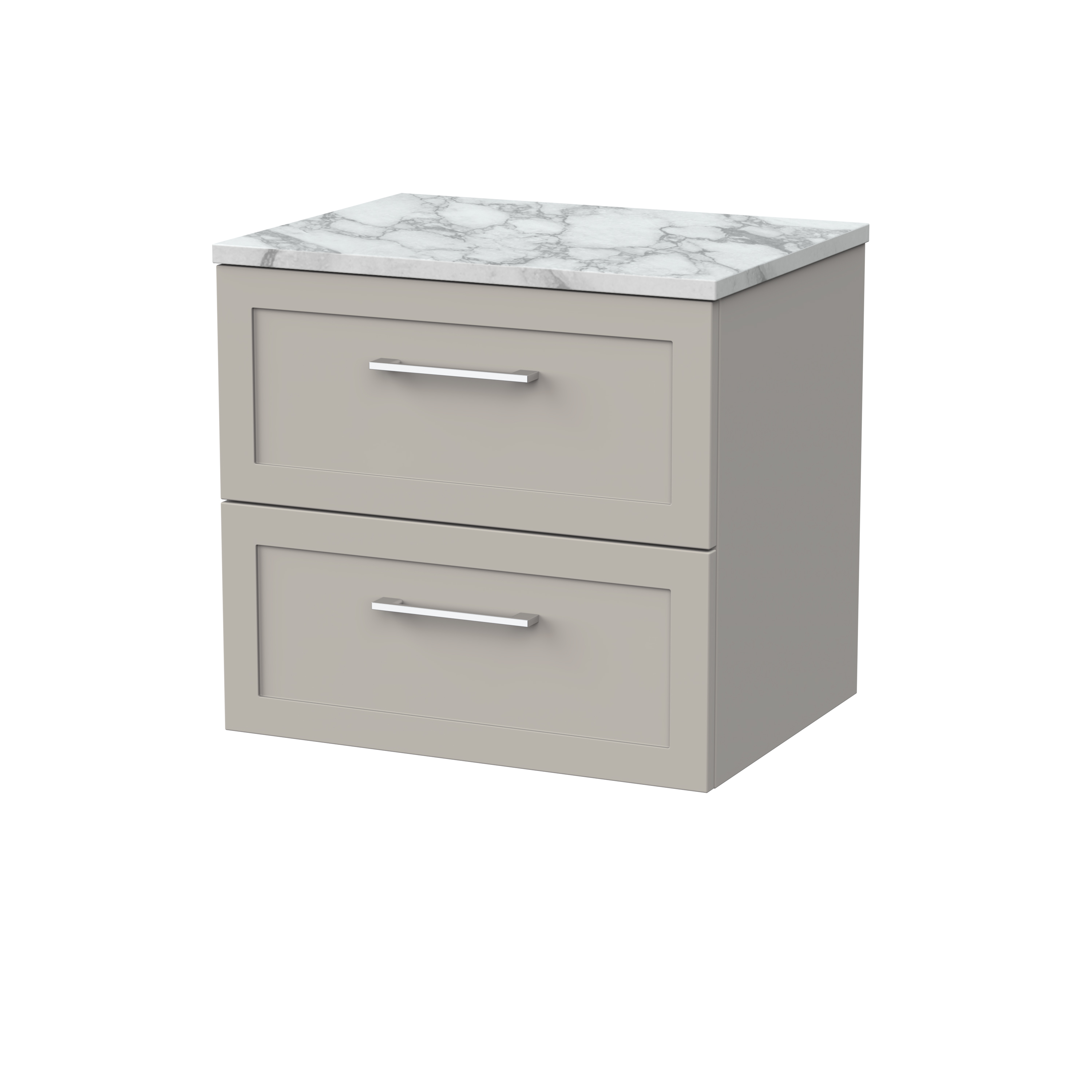 nuie Lux Larck 600mm 2- Drawer Wall Hung Unit with Laminate Worktop - Pebble Grey