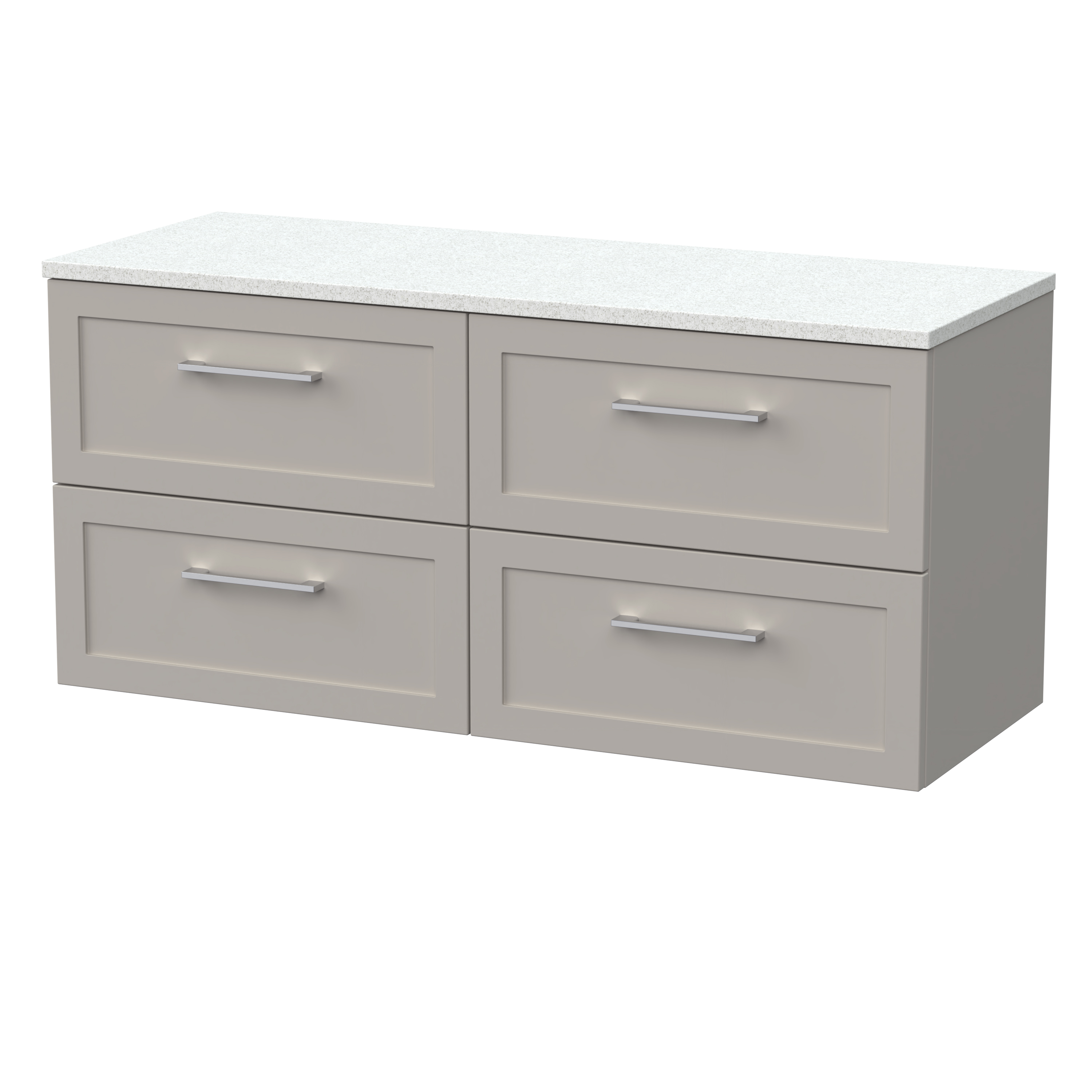 nuie Lux Larck 600mm 2- Drawer Wall Hung Unit with Laminate Worktop - Pebble Grey
