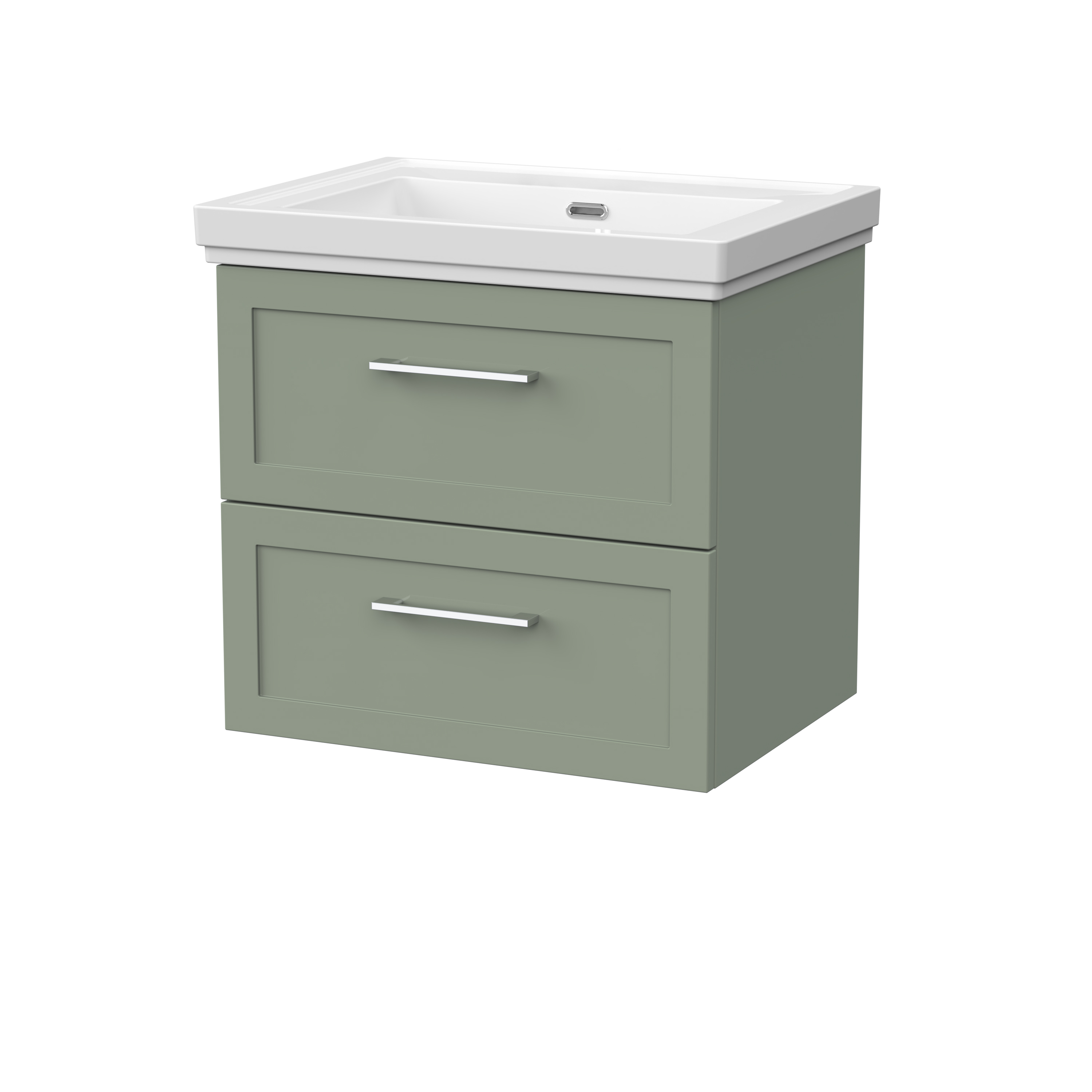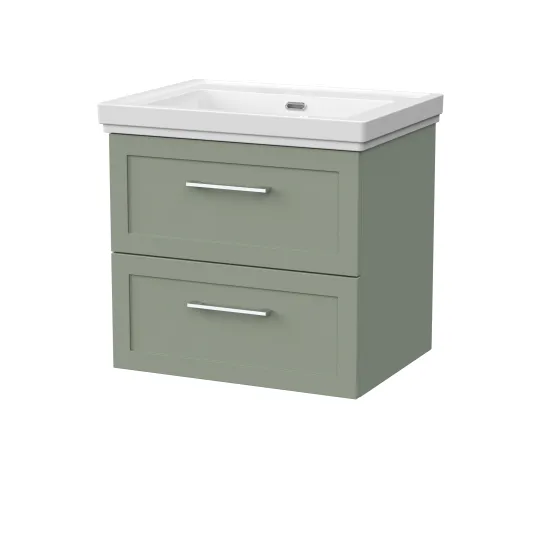 nuie Lux Larck 600mm 2- Drawer Wall Hung Unit with Traditional Fireclay Basin - 0 Tap Holes - Fern Green