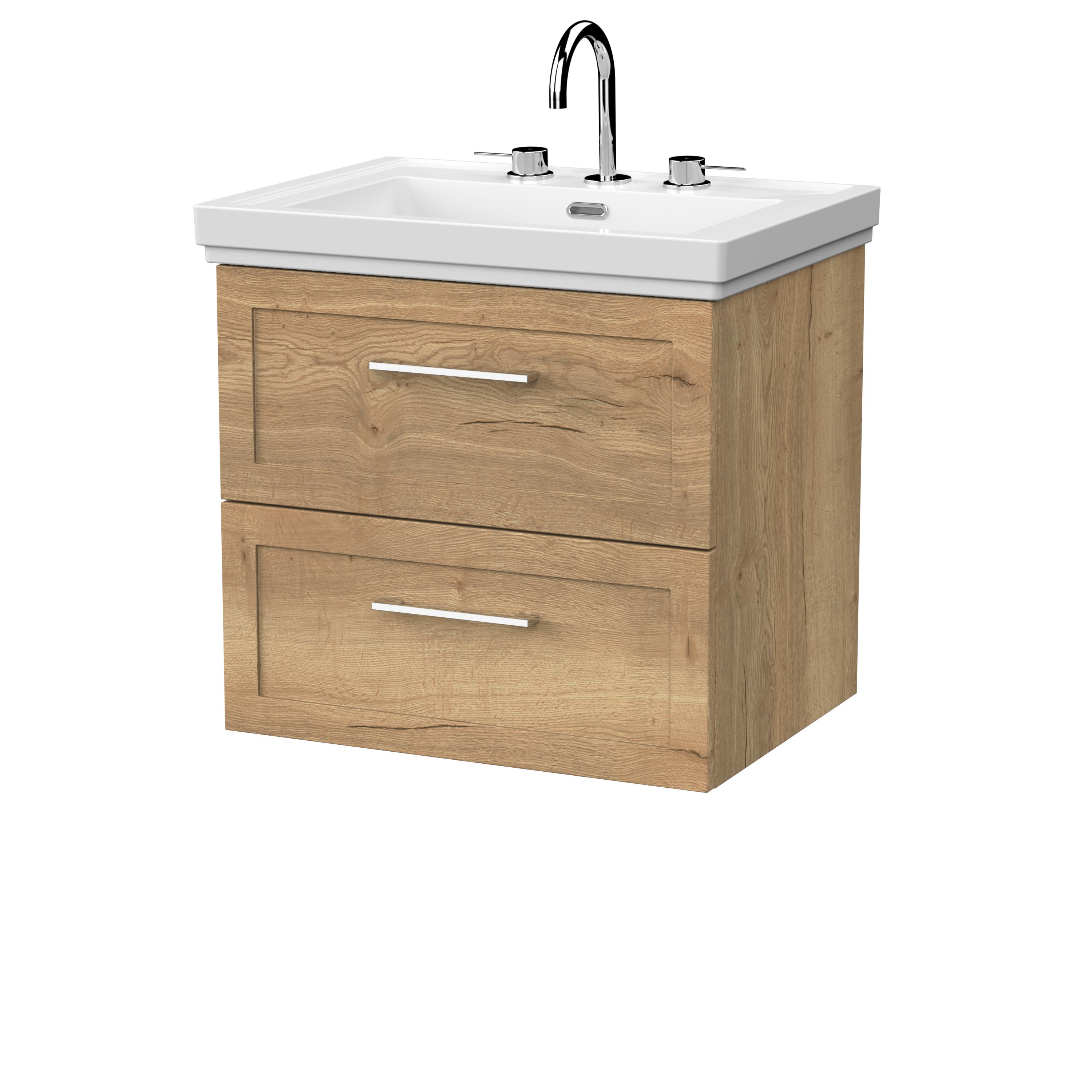 Larck 600mm 2- Drawer Wall Hung Unit with Traditional Fireclay Basin - 3 Tap Holes