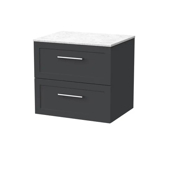Larck 600mm 2- Drawer Wall Hung Unit with White Marble Top