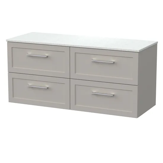 nuie Lux Larck 600mm 2- Drawer Wall Hung Unit with White Marble Top - Pebble Grey