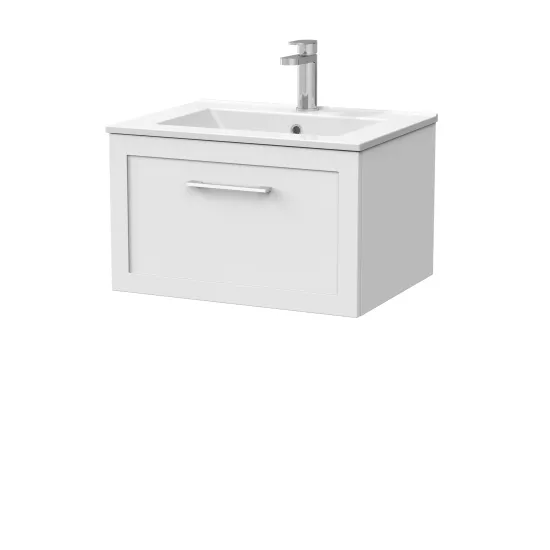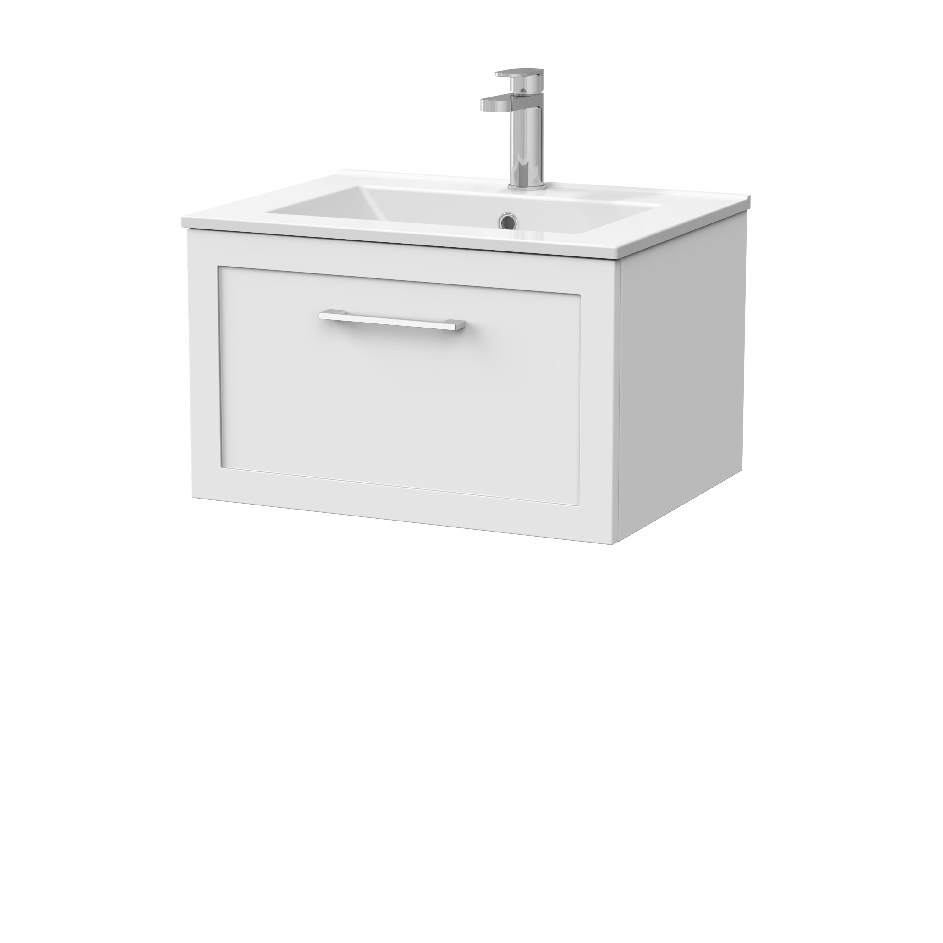 nuie Lux Larck 600mm Single Drawer Wall Hung Unit with 1 Tap Hole Minimalist Basin Top - Matt White