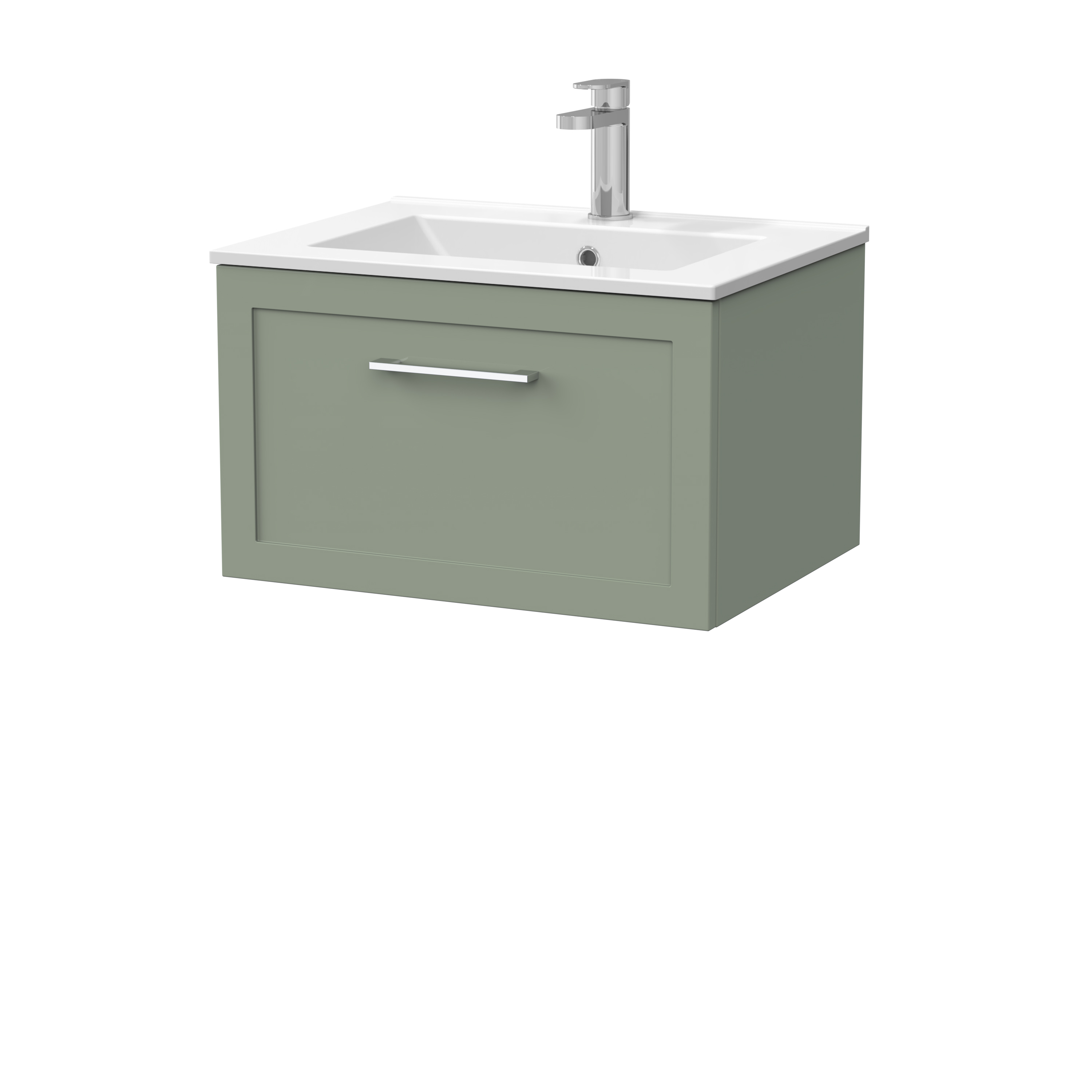 nuie Lux Larck 600mm Single Drawer Wall Hung Unit with 1 Tap Hole Minimalist Basin Top - Fern Green