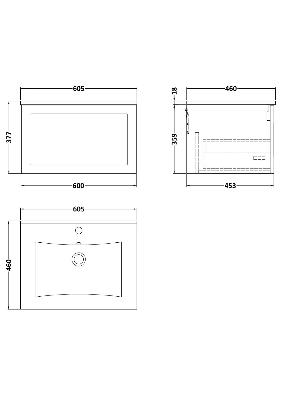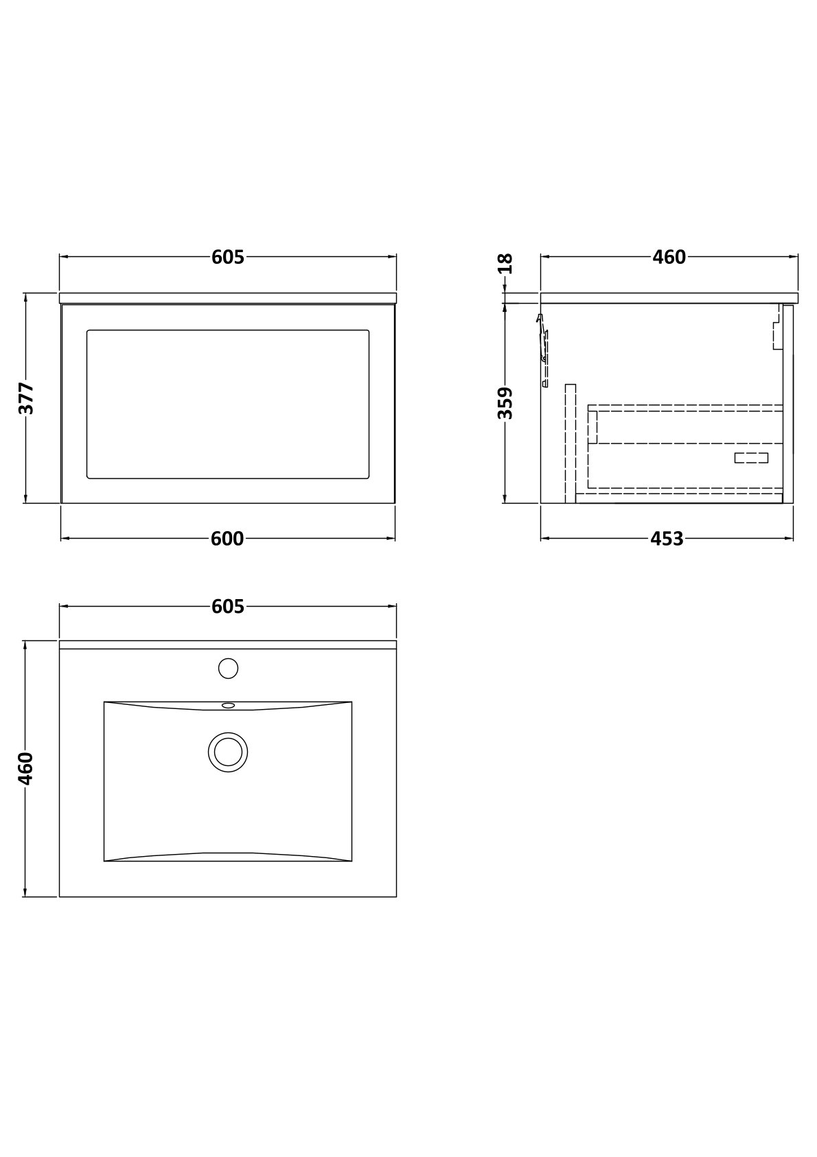Larck 600mm Single Drawer Wall Hung Unit with 1 Tap Hole Minimalist Basin Top