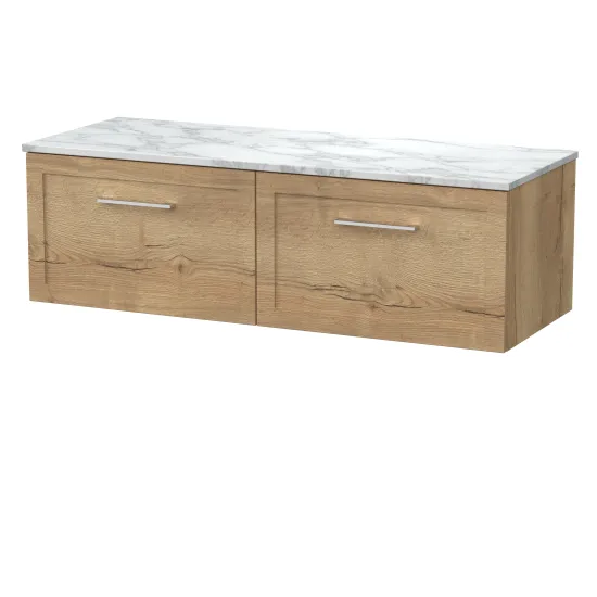 nuie Lux Larck 600mm Single Drawer Wall Hung Unit with Carrera Marble Top - Autumn Oak