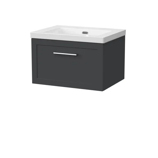 nuie Lux Larck 600mm Single Drawer Wall Hung Unit with Contemporary Fireclay Basin - 0 Tap Holes - Pebble Grey