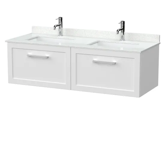 nuie Lux Larck 600mm Single Drawer Wall Hung Unit with Double Bowl Marble Top 1 Tap Hole in White - Matt White