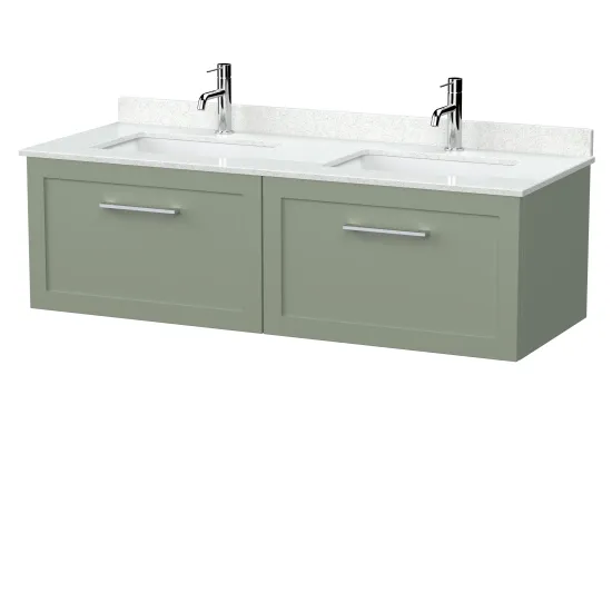 nuie Lux Larck 600mm Single Drawer Wall Hung Unit with Double Bowl Marble Top 1 Tap Hole in White - Fern Green