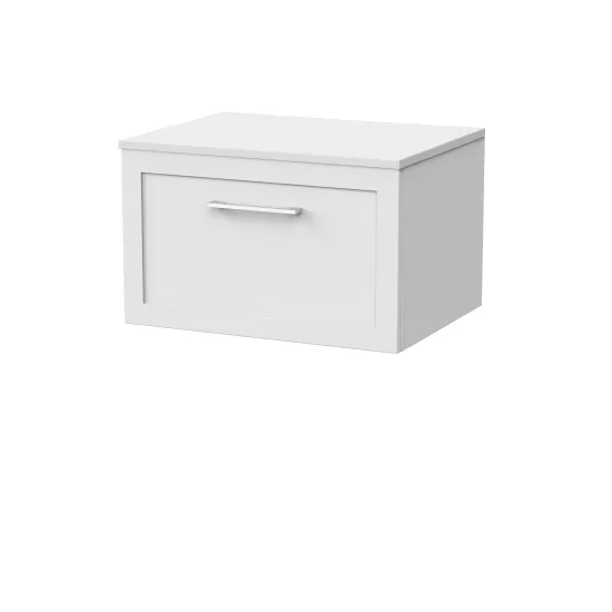 nuie Lux Larck 600mm Single Drawer Wall Hung Unit with Furniture Worktop - Matt White