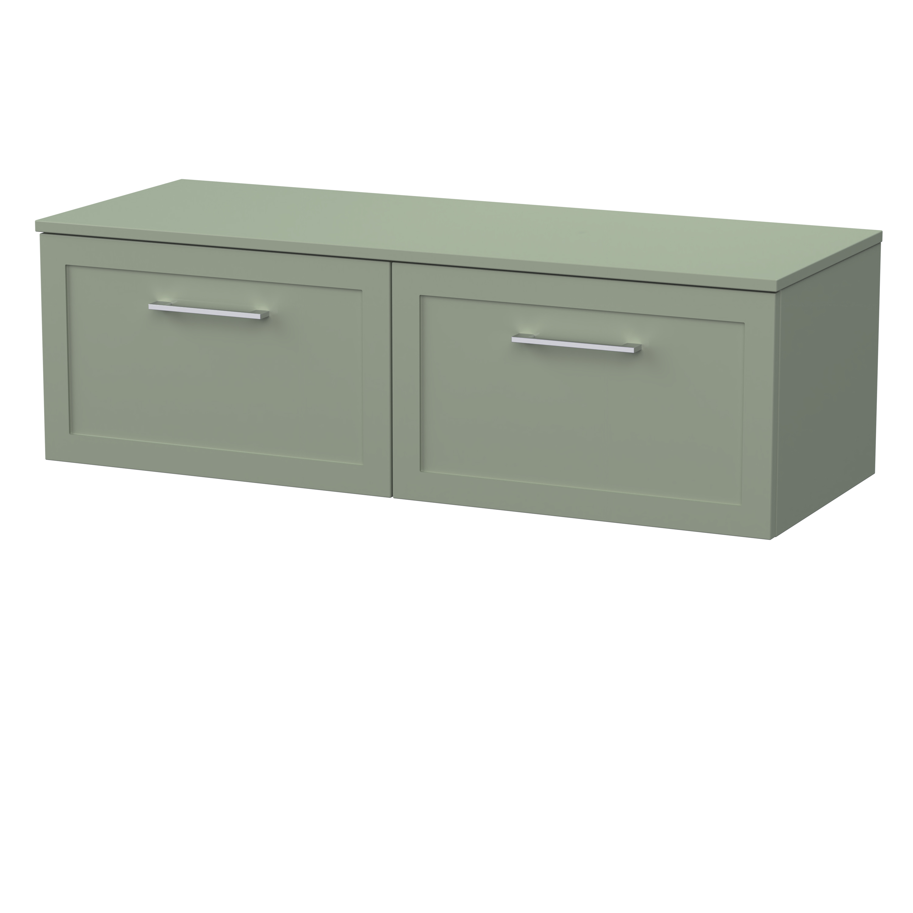 nuie Lux Larck 600mm Single Drawer Wall Hung Unit with Furniture Worktop - Fern Green