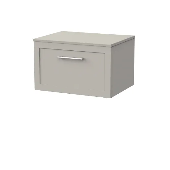 nuie Lux Larck 600mm Single Drawer Wall Hung Unit with Furniture Worktop - Pebble Grey