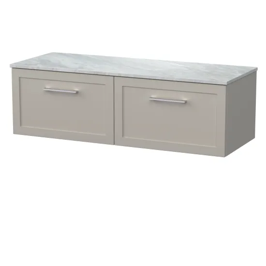 nuie Lux Larck 600mm Single Drawer Wall Hung Unit with Grey Marble Top - Pebble Grey