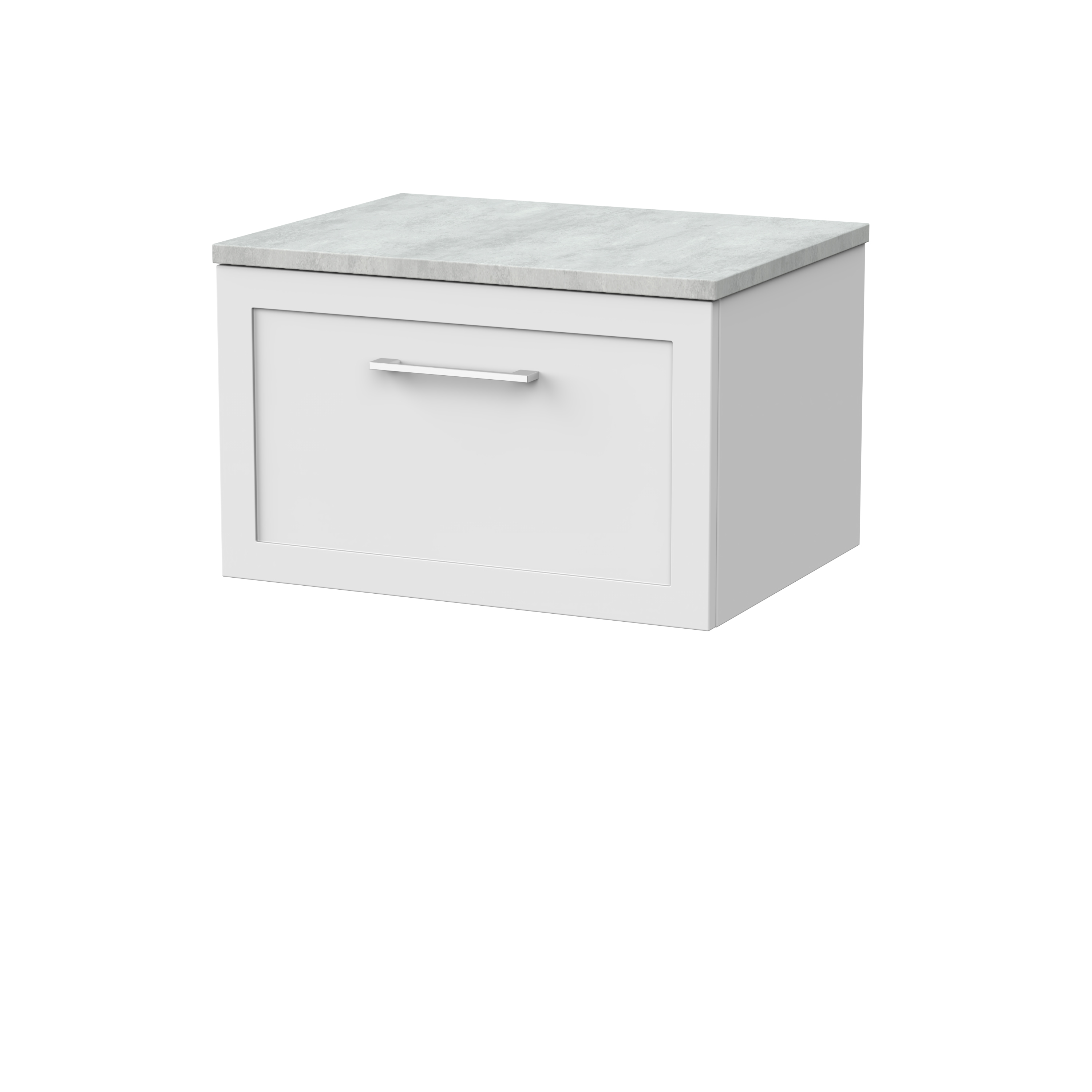 nuie Lux Larck 600mm Single Drawer Wall Hung Unit with Laminate Worktop - Matt White