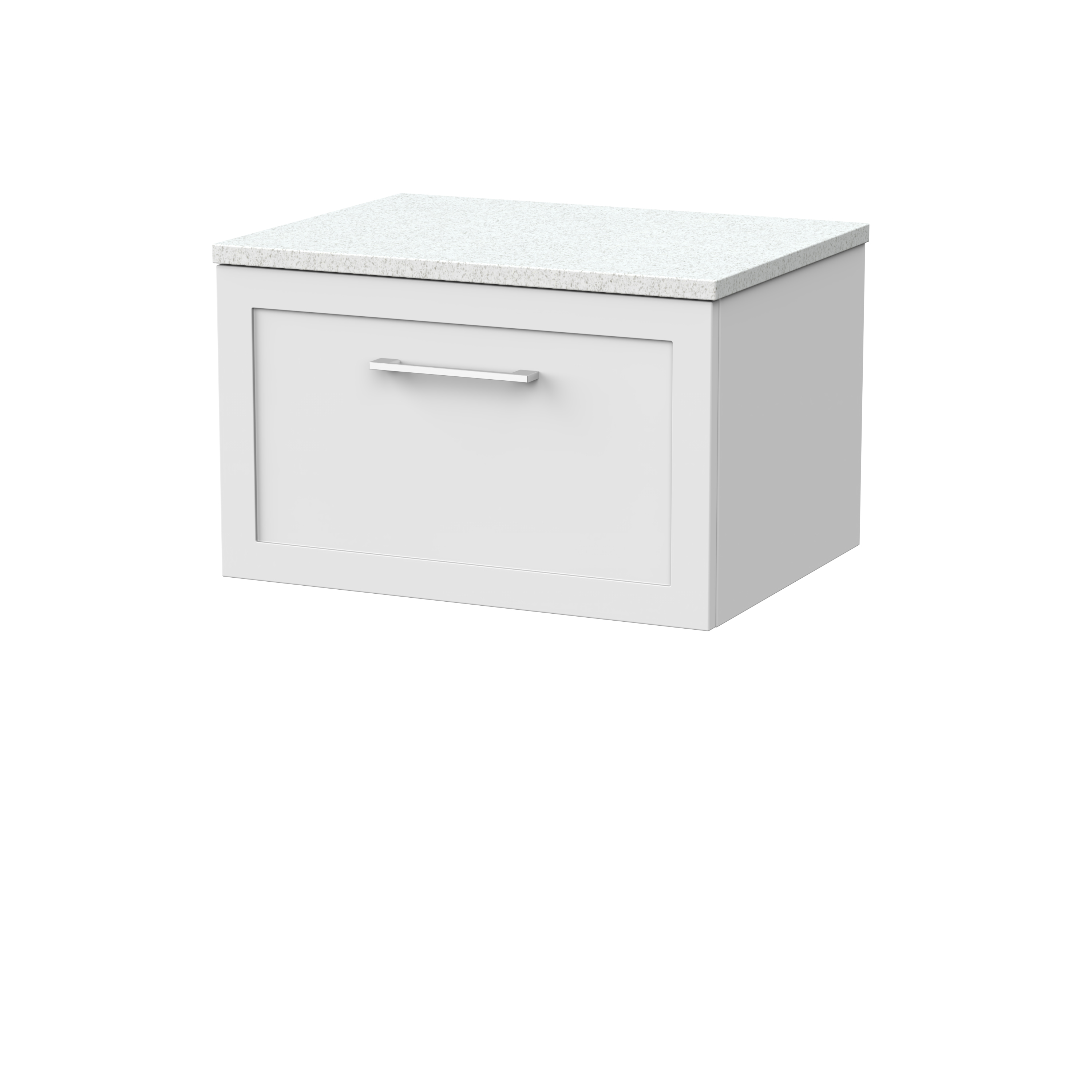 nuie Lux Larck 600mm Single Drawer Wall Hung Unit with Laminate Worktop - Matt White