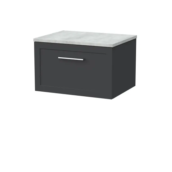 nuie Lux Larck 600mm Single Drawer Wall Hung Unit with Laminate Worktop - Pebble Grey