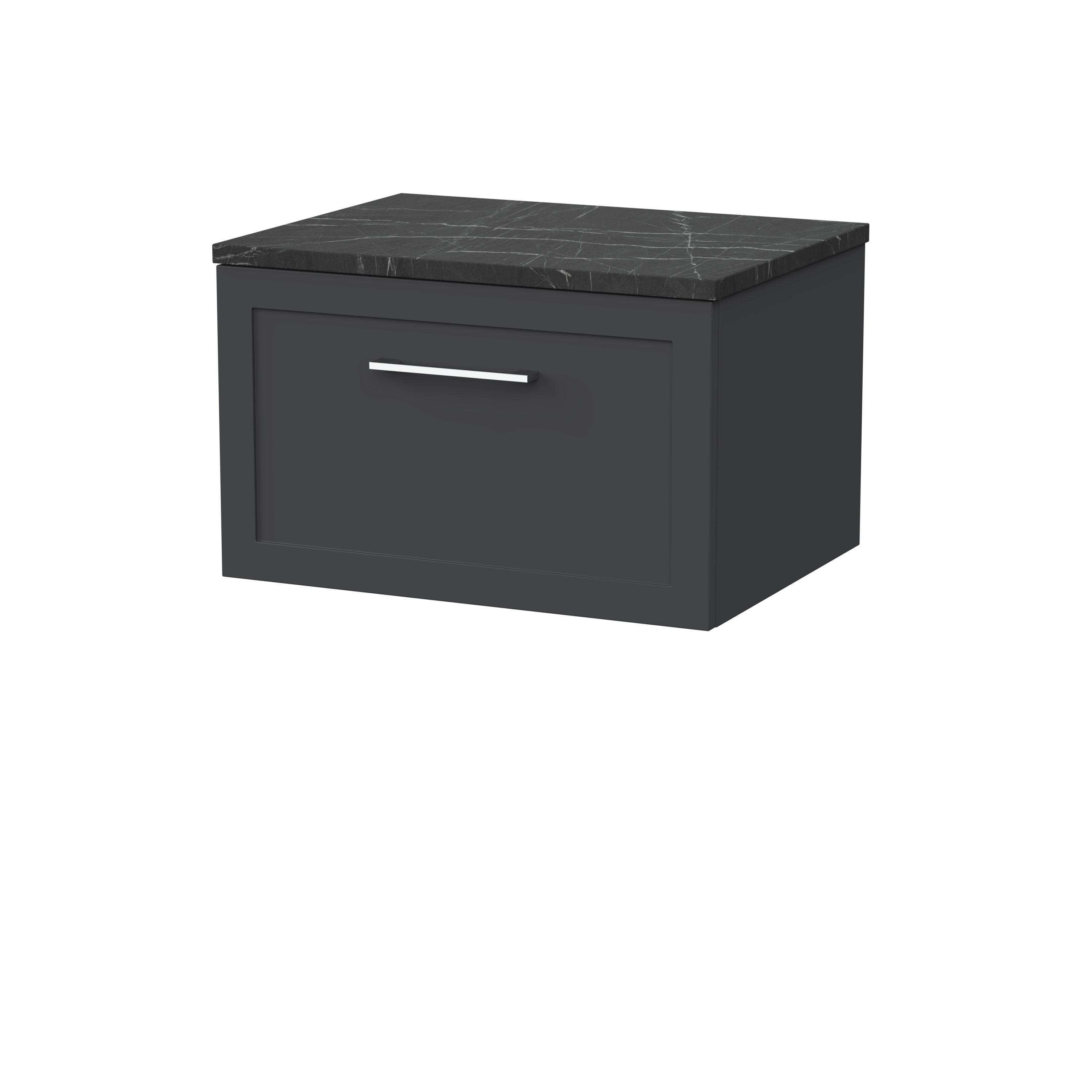 nuie Lux Larck 600mm Single Drawer Wall Hung Unit with Laminate Worktop - Pebble Grey