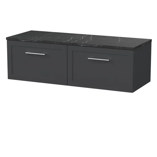 nuie Lux Larck 600mm Single Drawer Wall Hung Unit with Laminate Worktop - Pebble Grey