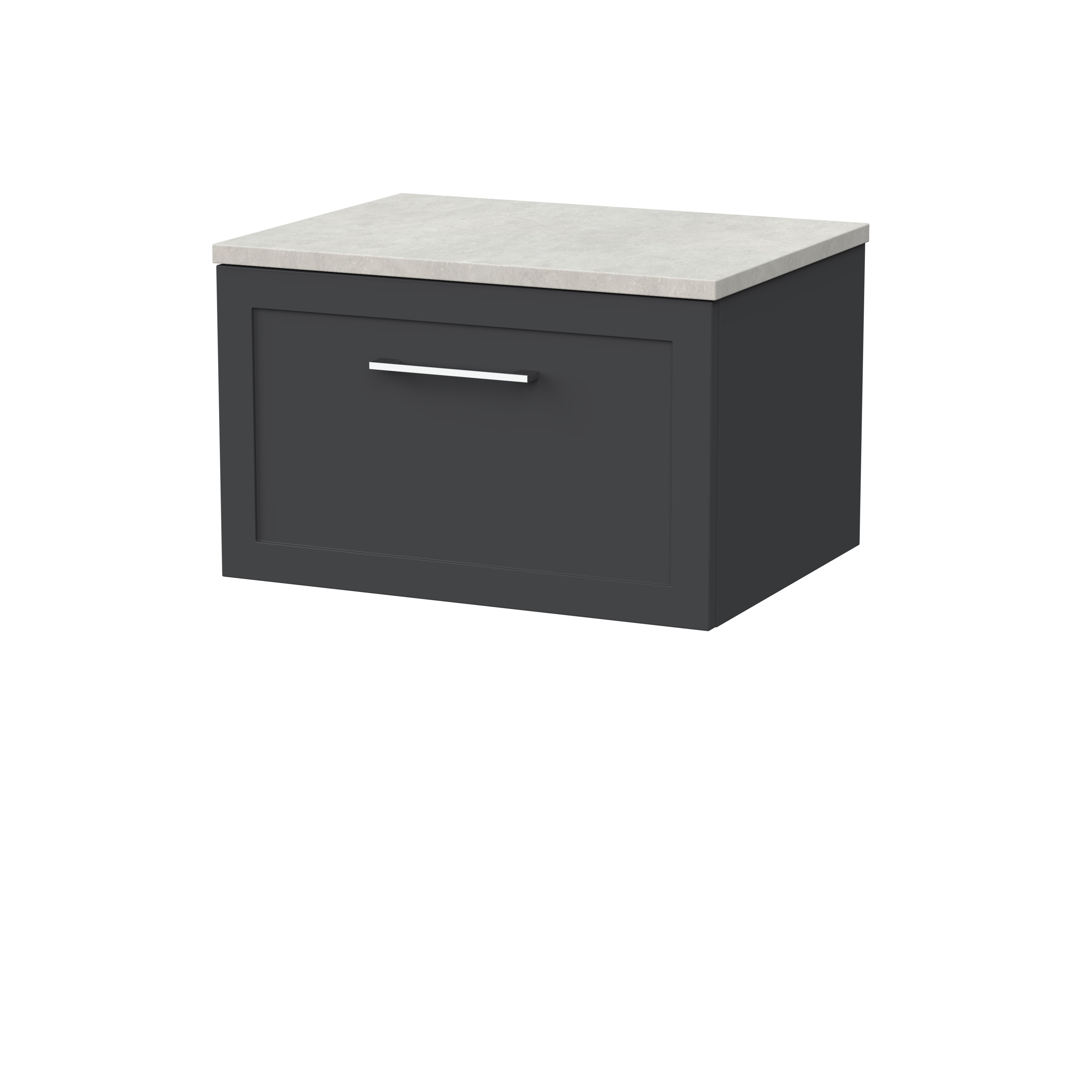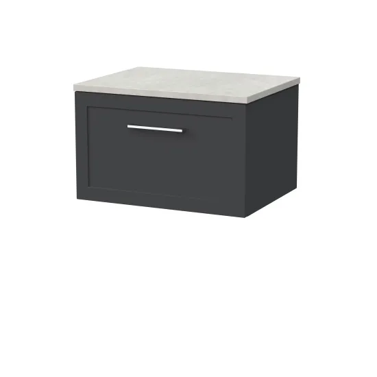 nuie Lux Larck 600mm Single Drawer Wall Hung Unit with Laminate Worktop - Pebble Grey