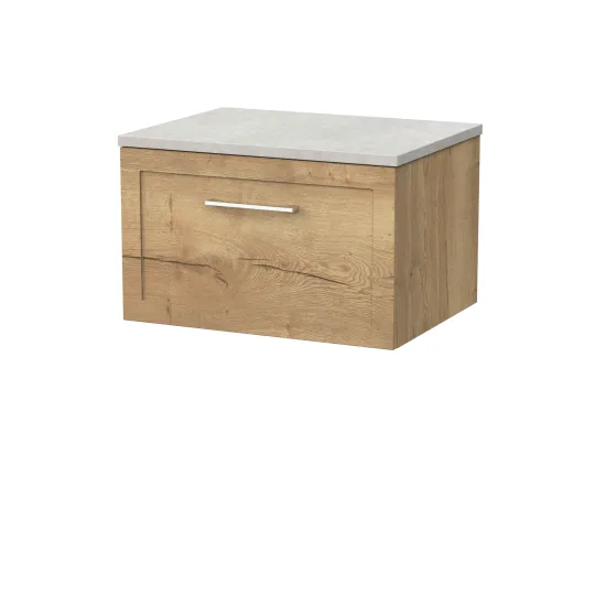 nuie Lux Larck 600mm Single Drawer Wall Hung Unit with Laminate Worktop - Autumn Oak
