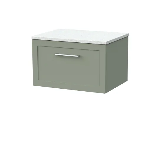 nuie Lux Larck 600mm Single Drawer Wall Hung Unit with Laminate Worktop - Fern Green