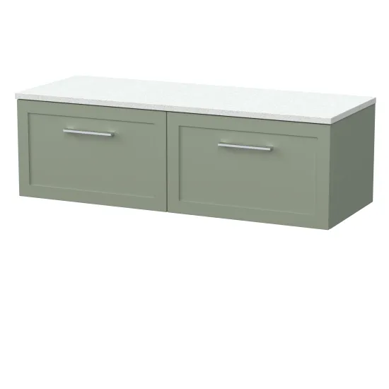 nuie Lux Larck 600mm Single Drawer Wall Hung Unit with Laminate Worktop - Fern Green