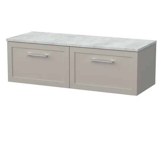 nuie Lux Larck 600mm Single Drawer Wall Hung Unit with Laminate Worktop - Pebble Grey