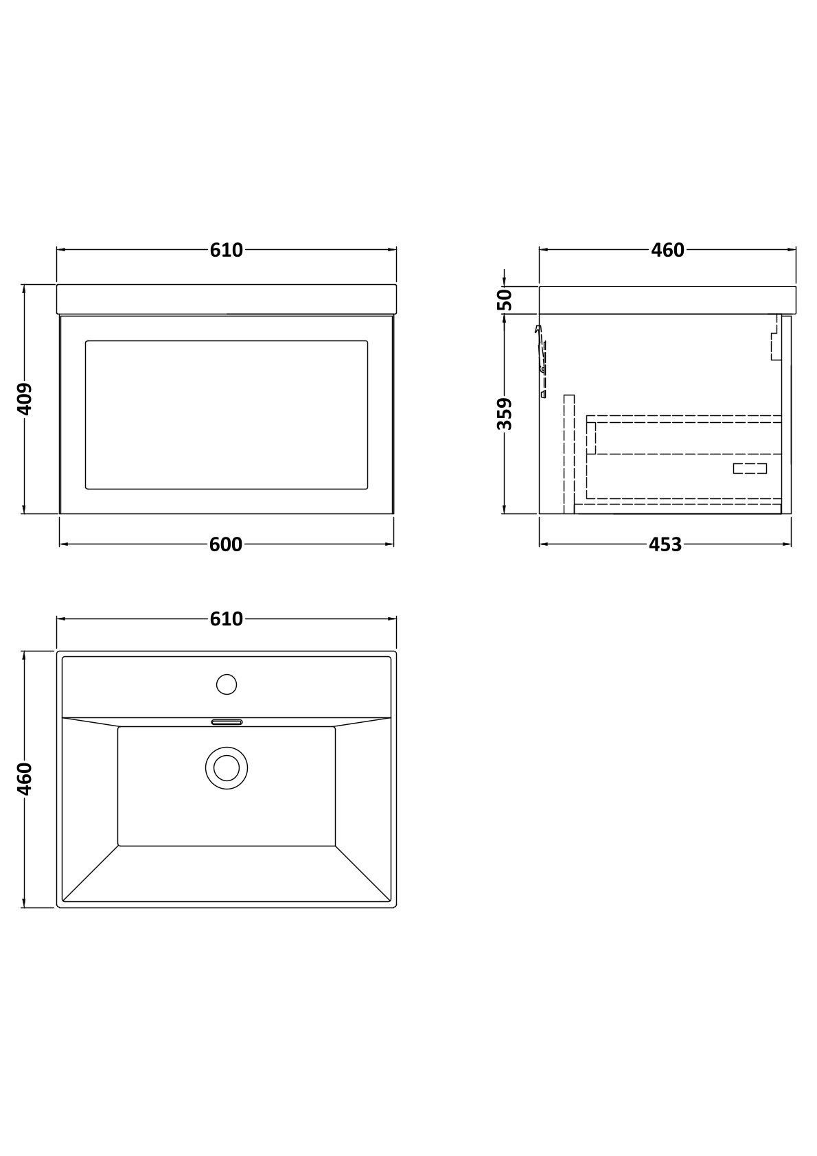 Larck 600mm Single Drawer Wall Hung Unit with Thin-Edge Basin - 1 Tap Hole