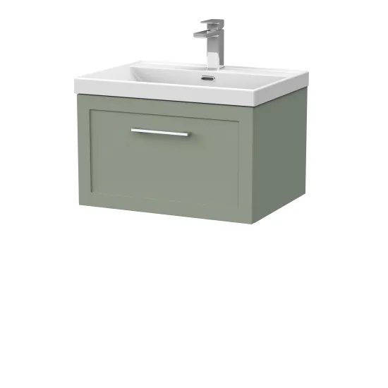 nuie Lux Larck 600mm Single Drawer Wall Hung Unit with Thin-Edge Basin - 1 Tap Hole - Fern Green