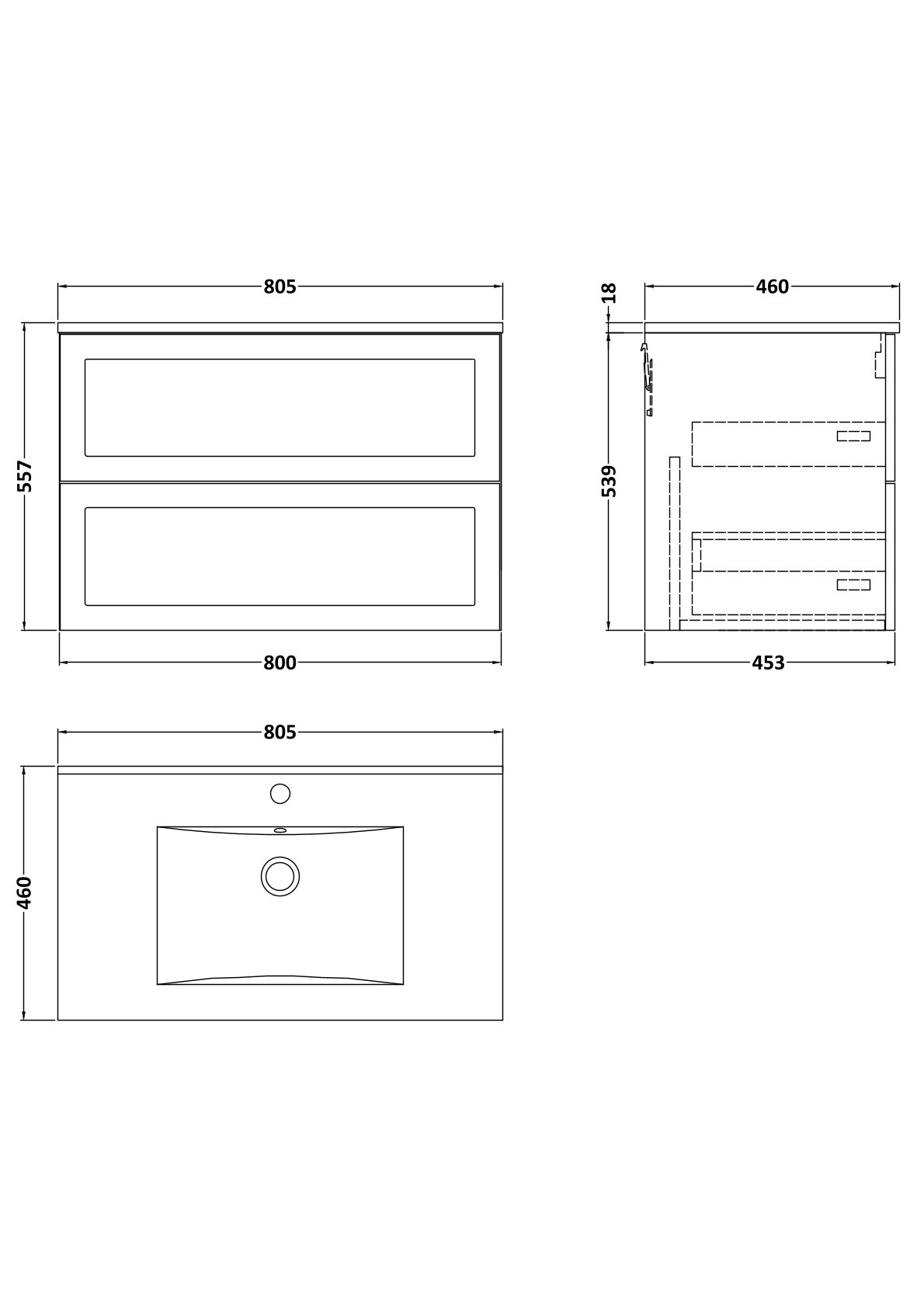 Larck 800mm 2- Drawer Wall Hung Unit with 1 Tap Hole Minimalist Basin Top