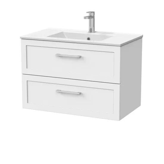 nuie Lux Larck 800mm 2- Drawer Wall Hung Unit with 1 Tap Hole Minimalist Basin Top - Matt White