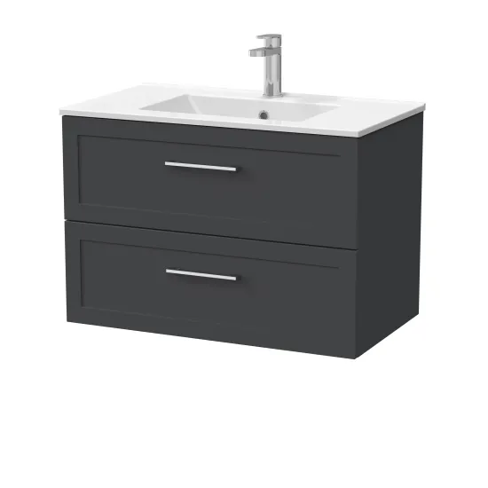 Larck 800mm 2- Drawer Wall Hung Unit with 1 Tap Hole Minimalist Basin Top