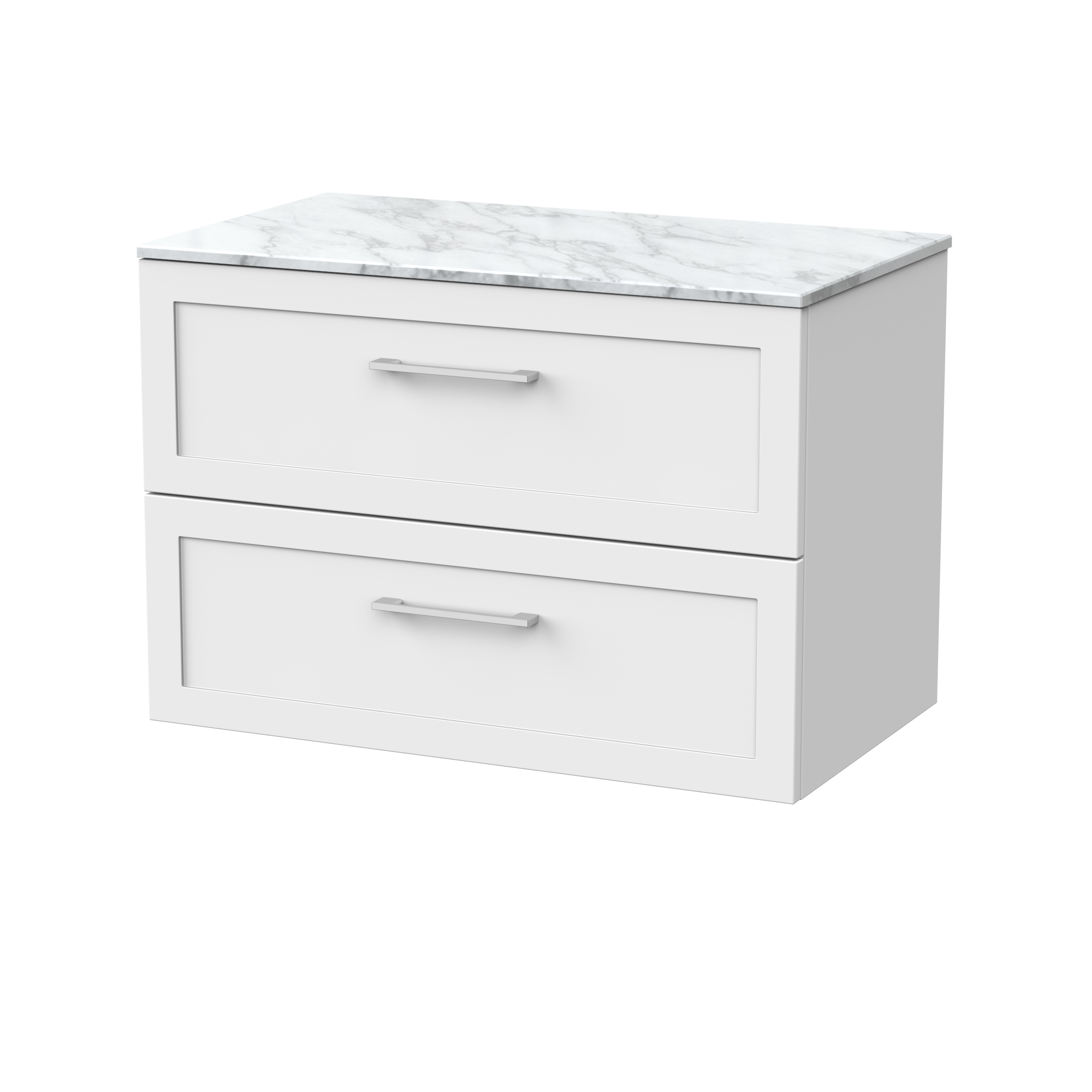 Larck 800mm 2- Drawer Wall Hung Unit with Carrera Marble Top