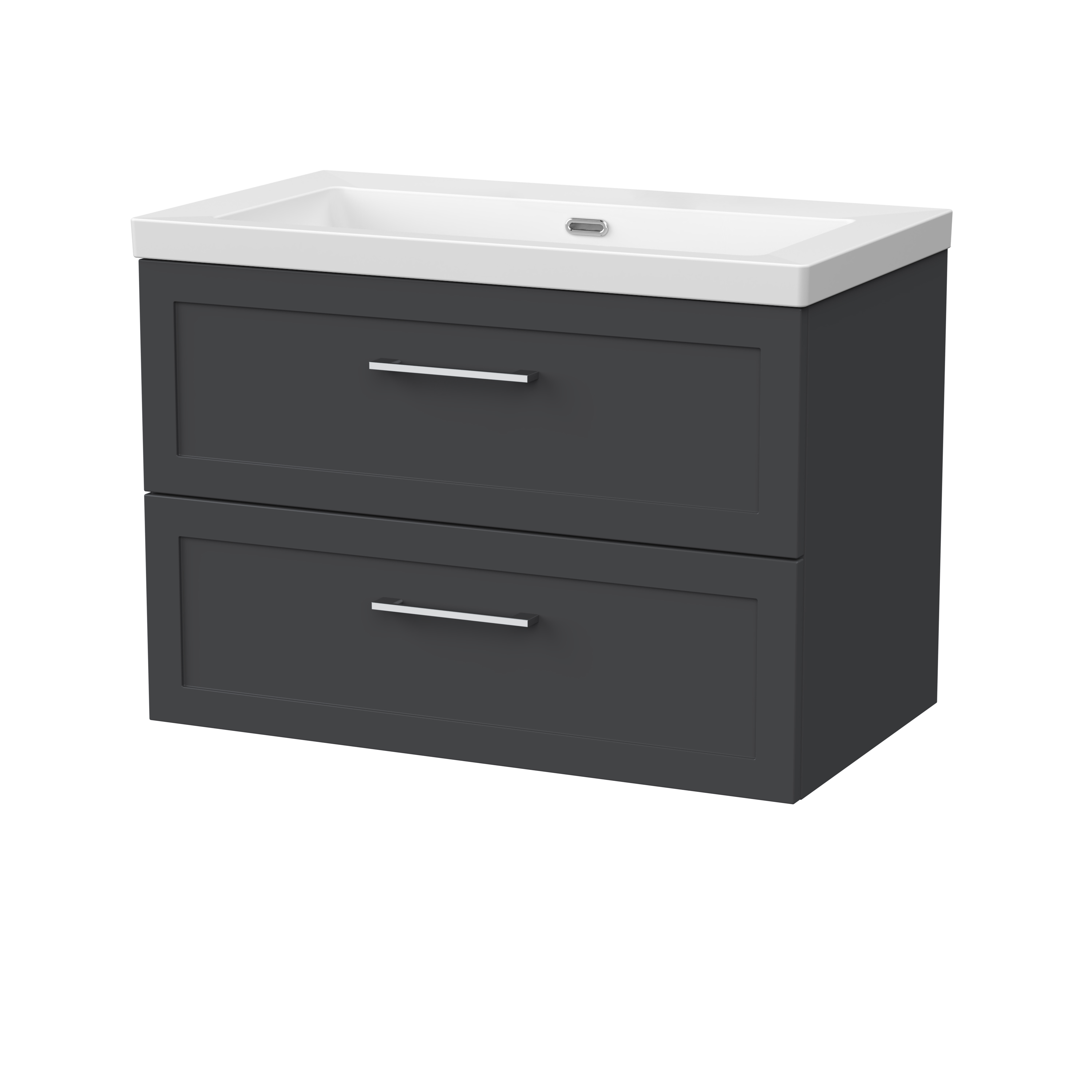 nuie Lux Larck 800mm 2- Drawer Wall Hung Unit with Contemporary Fireclay Basin - 0 Tap Holes - Soft Black