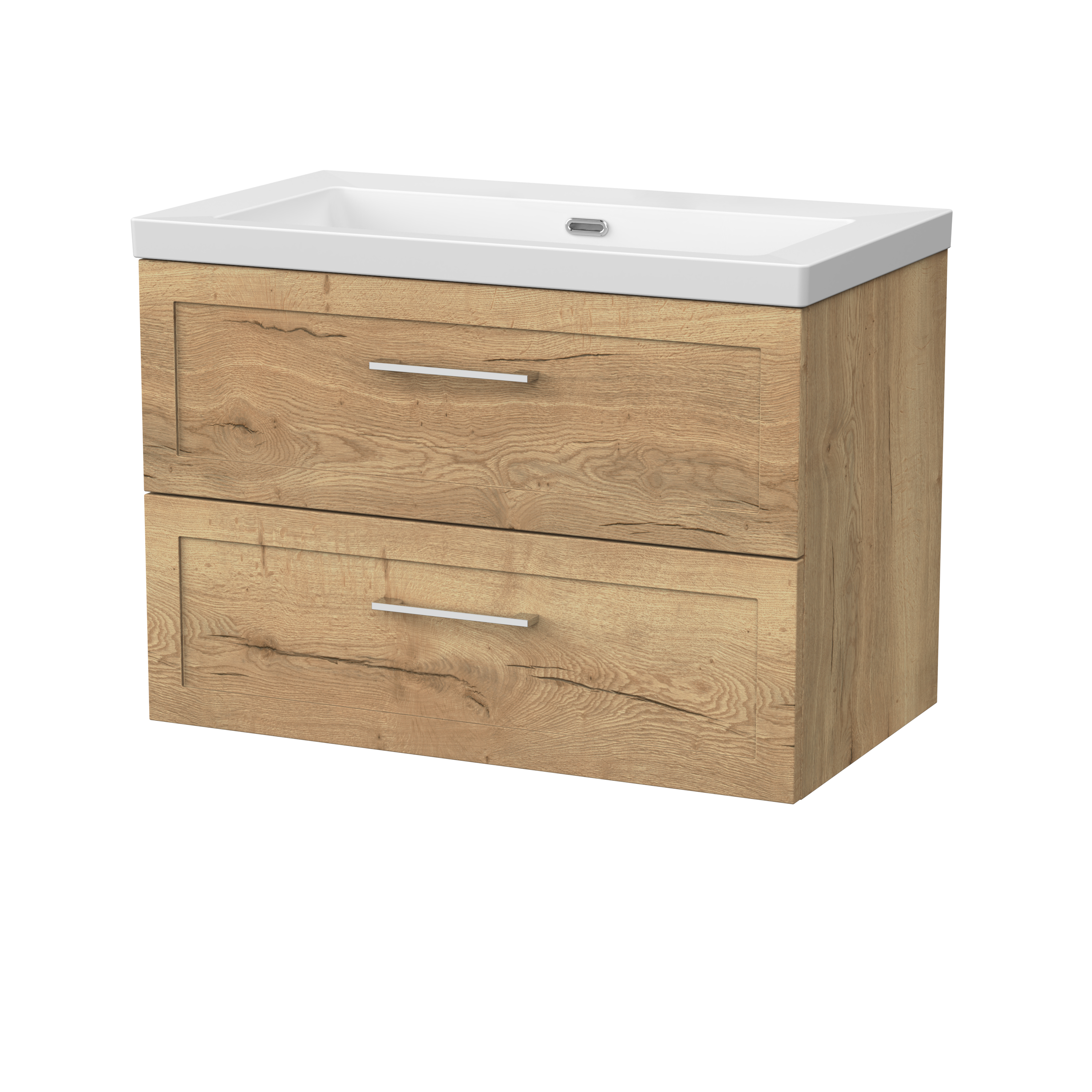 nuie Lux Larck 800mm 2- Drawer Wall Hung Unit with Contemporary Fireclay Basin - 0 Tap Holes - Autumn Oak