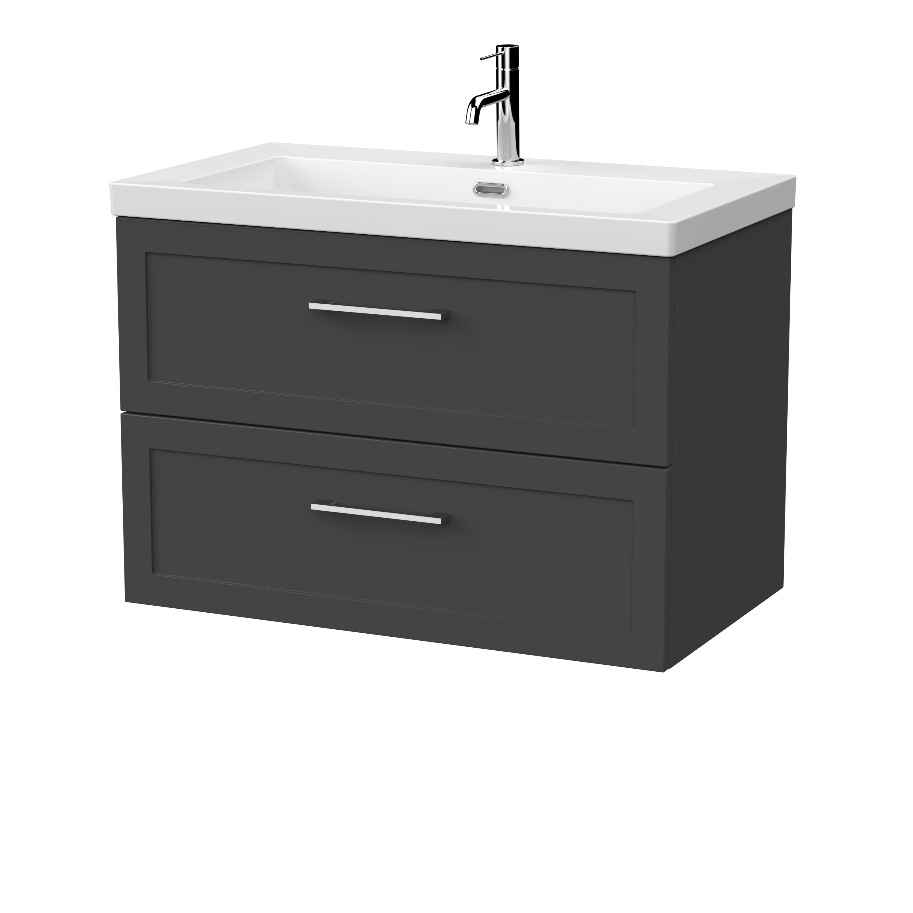Larck 800mm 2- Drawer Wall Hung Unit with Contemporary Fireclay Basin - 1 Tap Hole