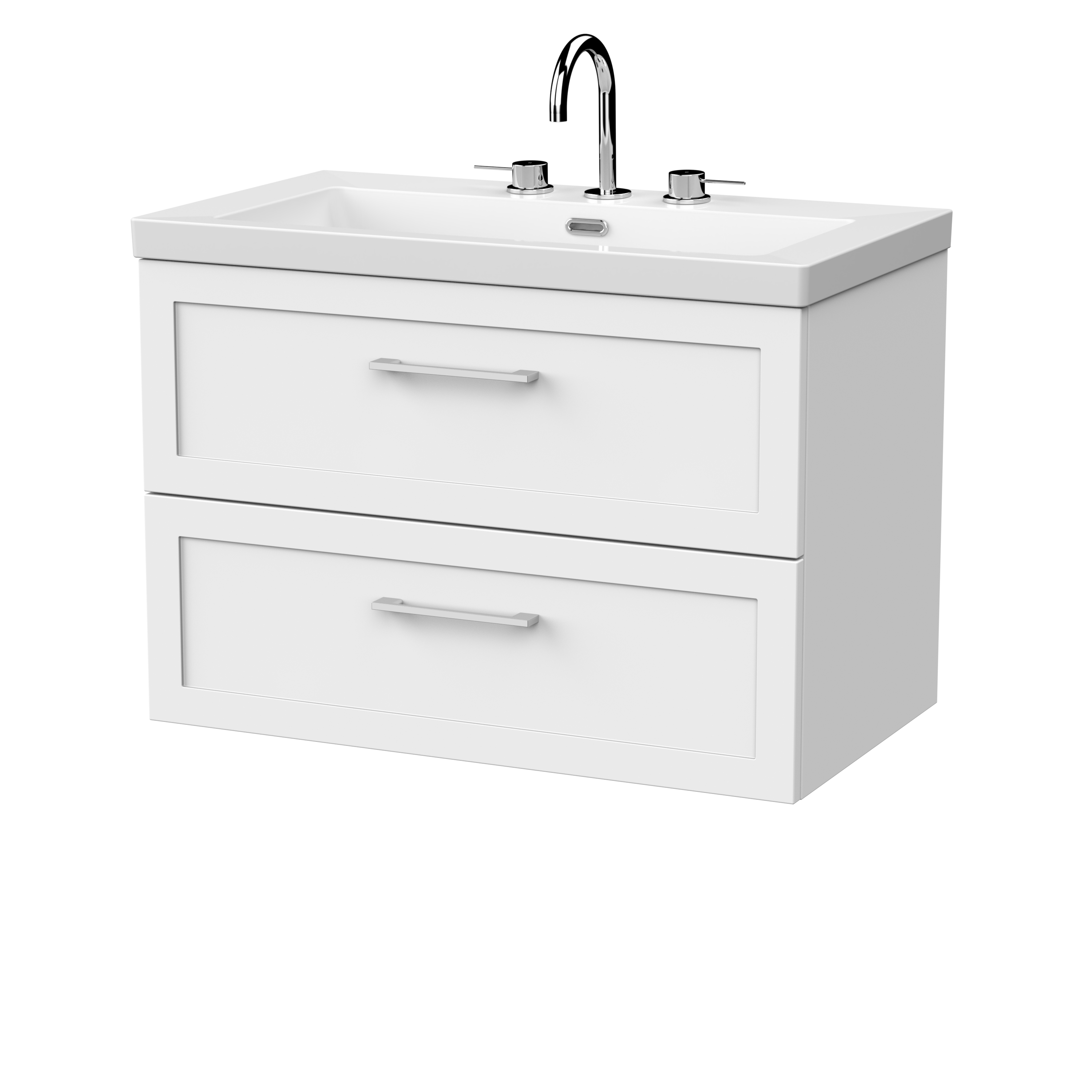 Larck 800mm 2- Drawer Wall Hung Unit with Contemporary Fireclay Basin - 3 Tap Holes