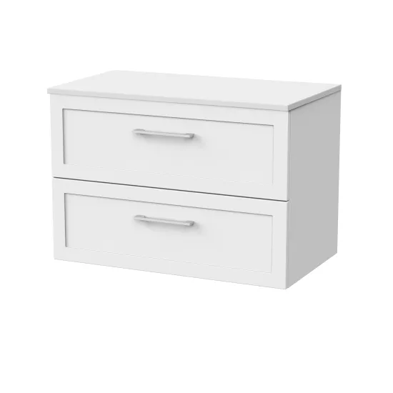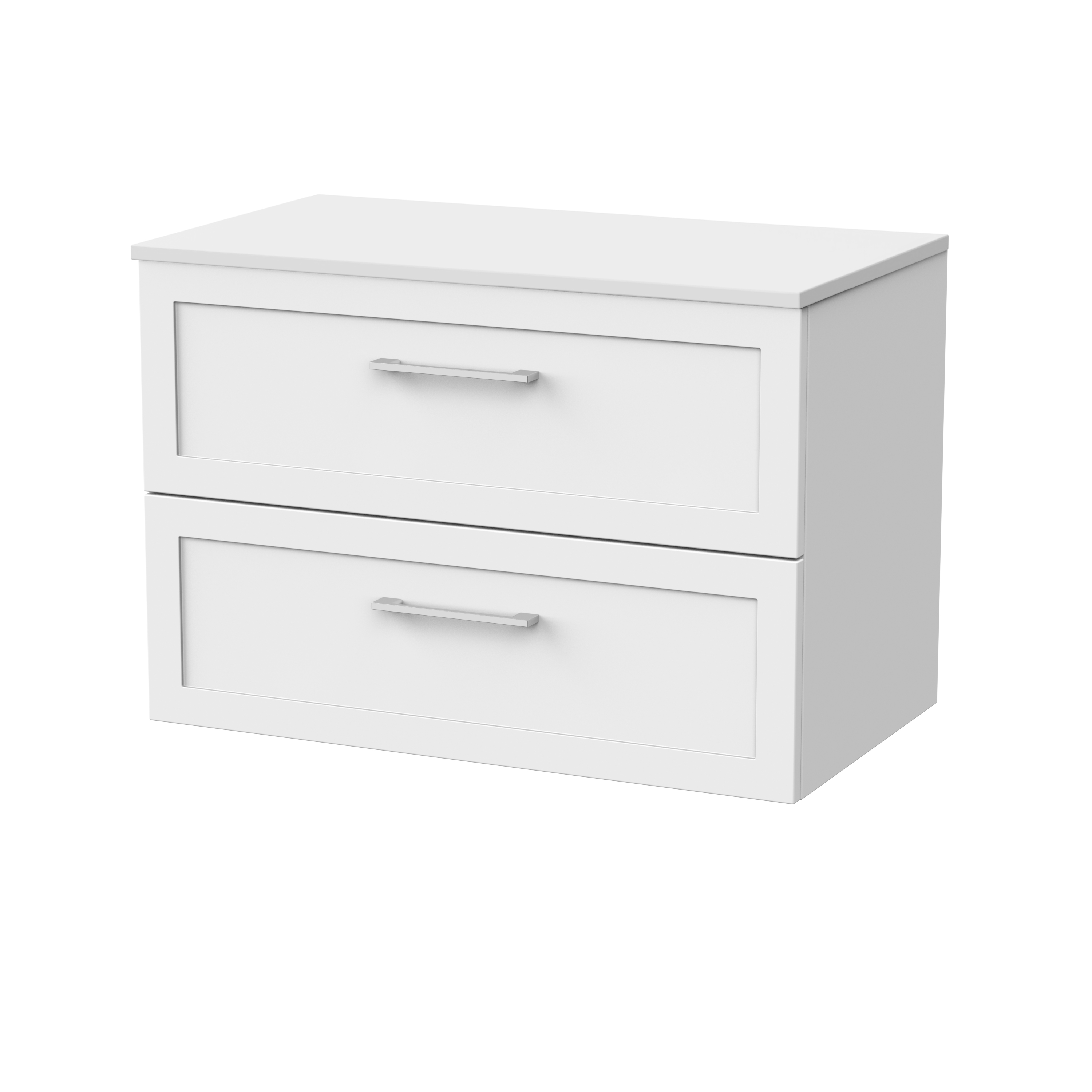 nuie Lux Larck 800mm 2- Drawer Wall Hung Unit with Furniture Worktop - Matt White