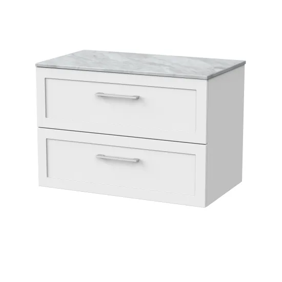 nuie Lux Larck 800mm 2- Drawer Wall Hung Unit with Grey Marble Top - Matt White