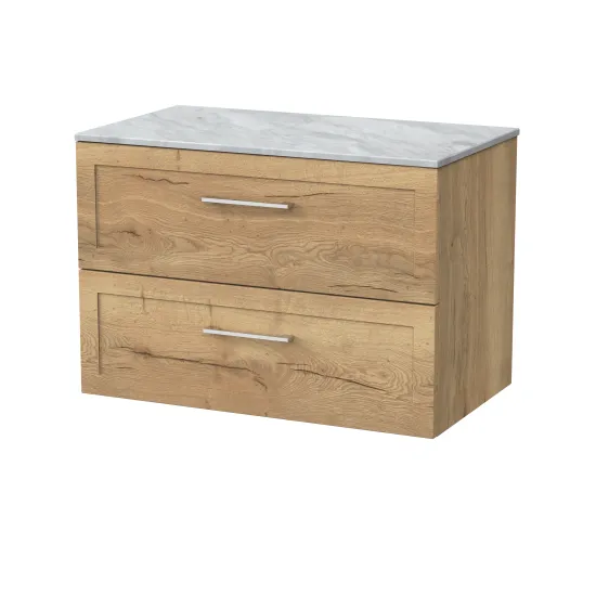 nuie Lux Larck 800mm 2- Drawer Wall Hung Unit with Grey Marble Top - Autumn Oak