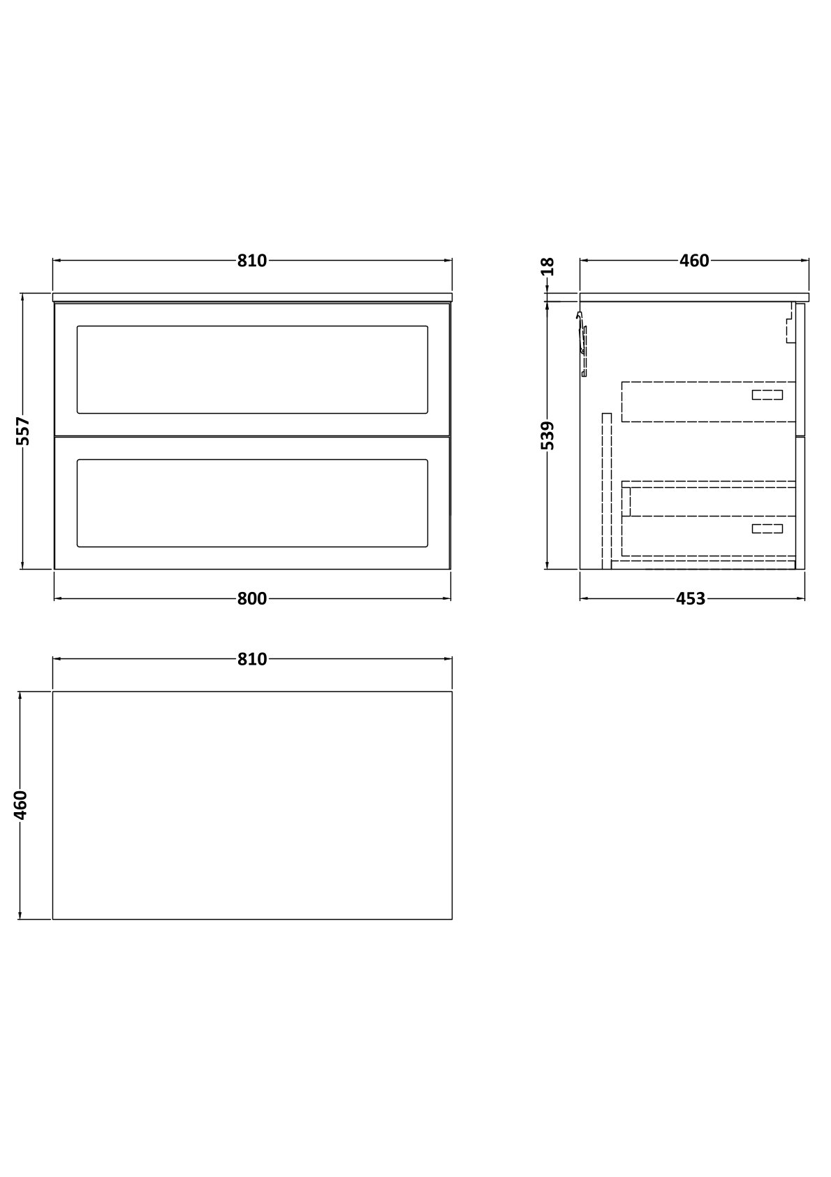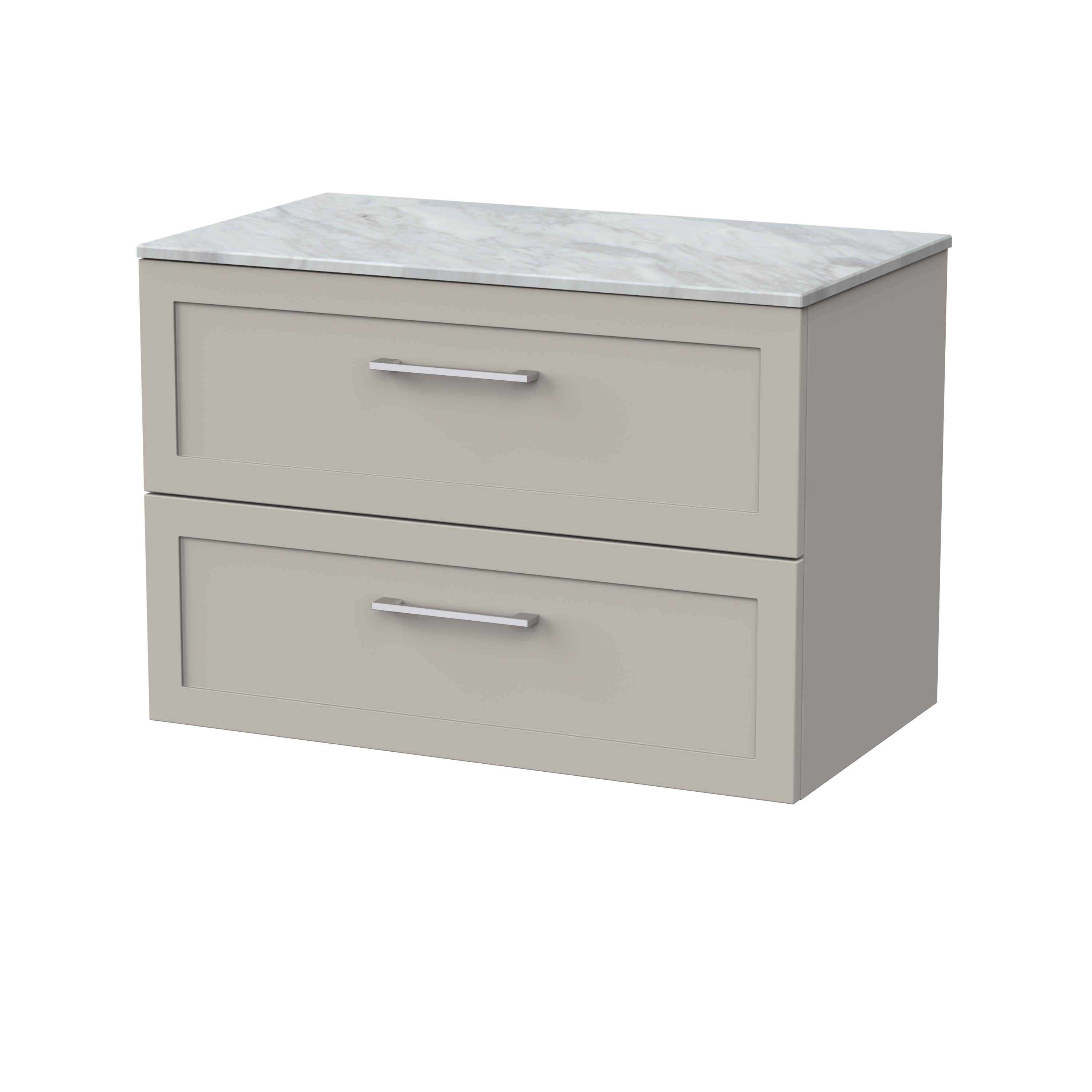 nuie Lux Larck 800mm 2- Drawer Wall Hung Unit with Grey Marble Top - Pebble Grey