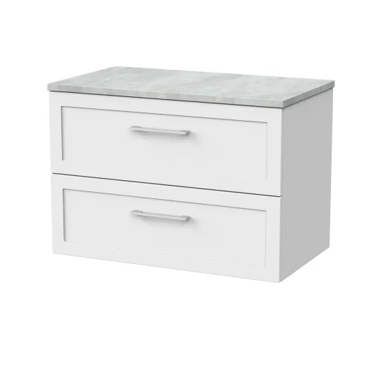 nuie Lux Larck 800mm 2- Drawer Wall Hung Unit with Laminate Worktop - Matt White