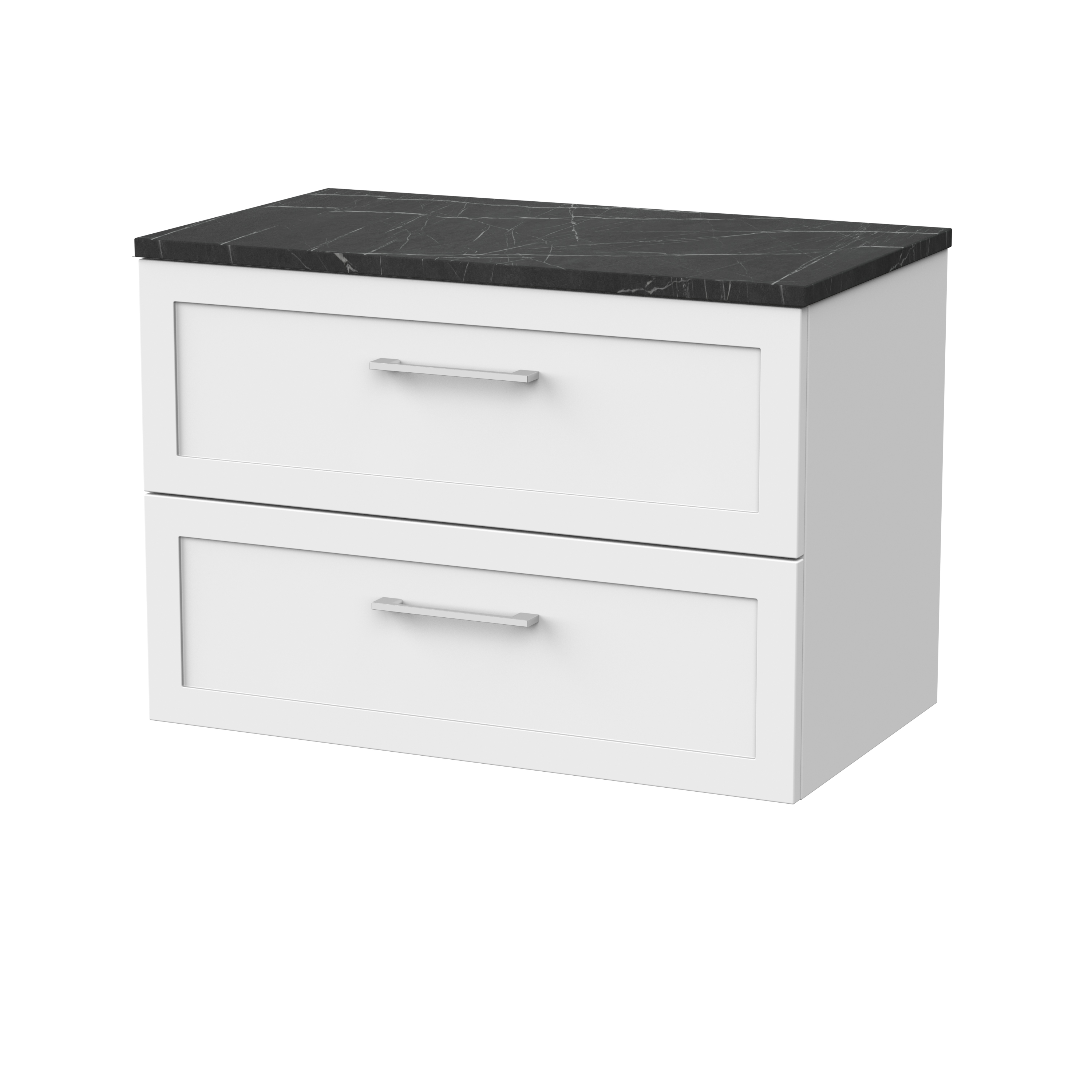 nuie Lux Larck 800mm 2- Drawer Wall Hung Unit with Laminate Worktop - Matt White