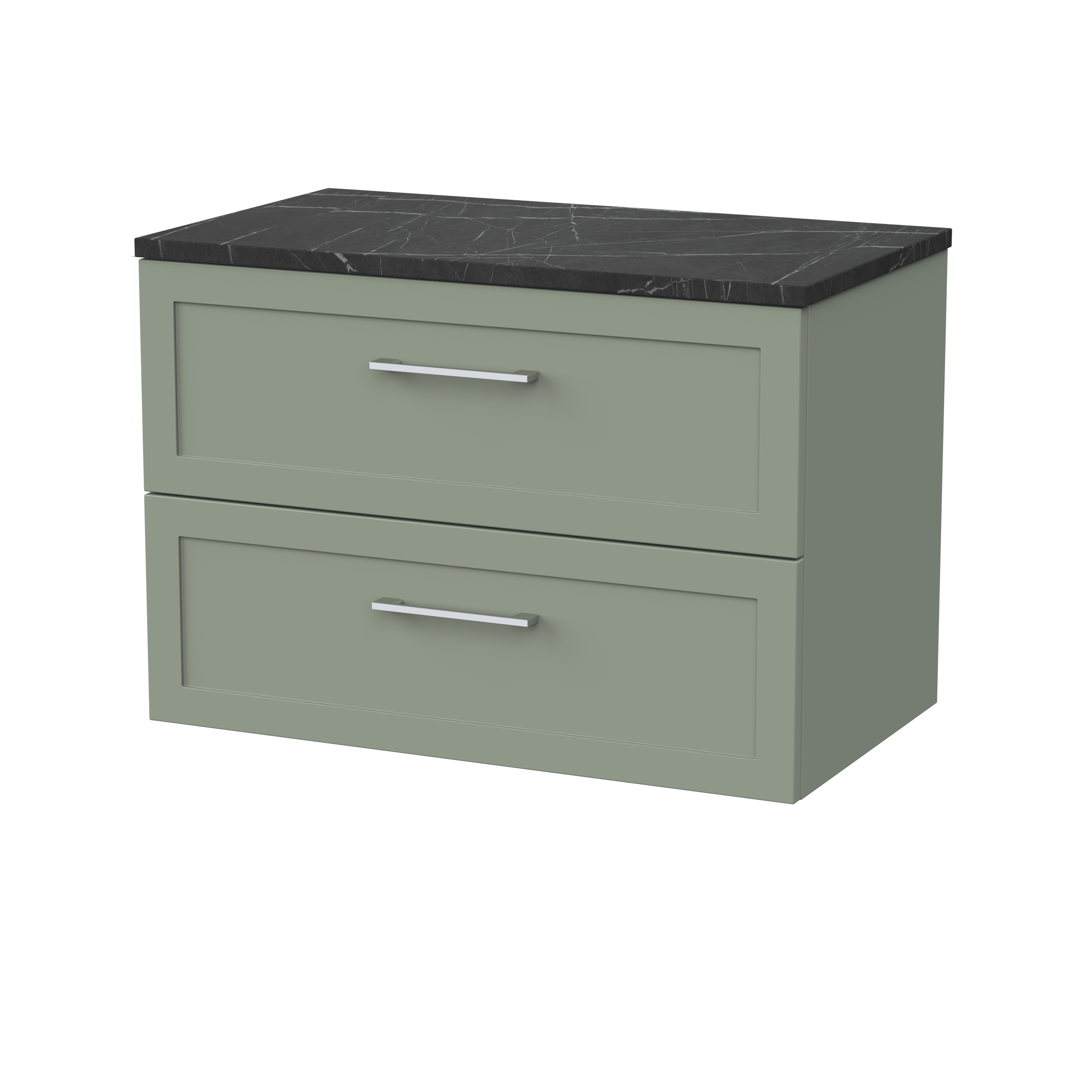 nuie Lux Larck 800mm 2- Drawer Wall Hung Unit with Laminate Worktop - Fern Green