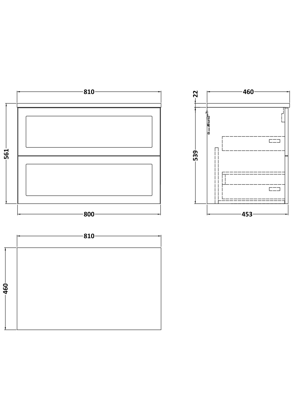 Larck 800mm 2- Drawer Wall Hung Unit with Laminate Worktop