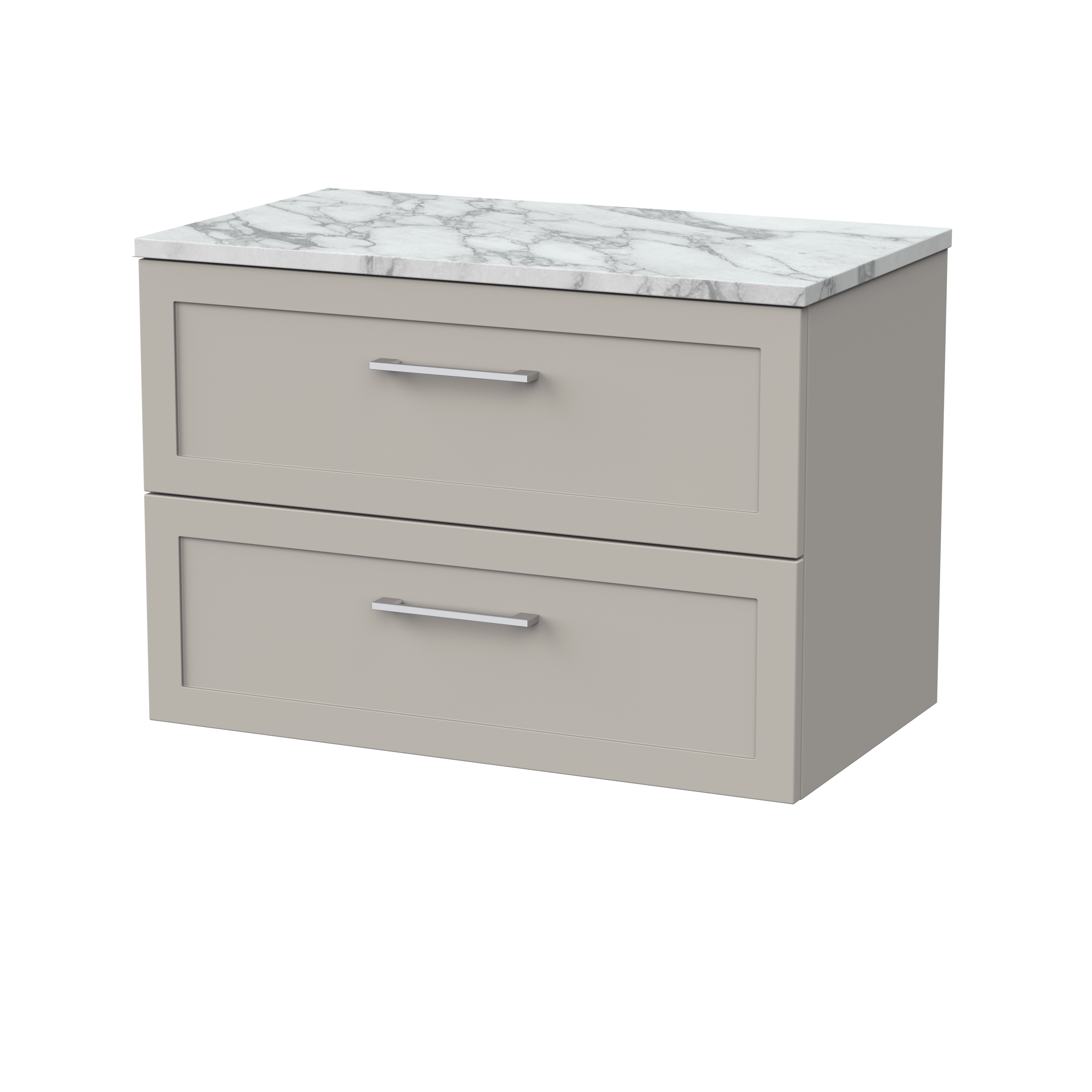 nuie Lux Larck 800mm 2- Drawer Wall Hung Unit with Laminate Worktop - Pebble Grey